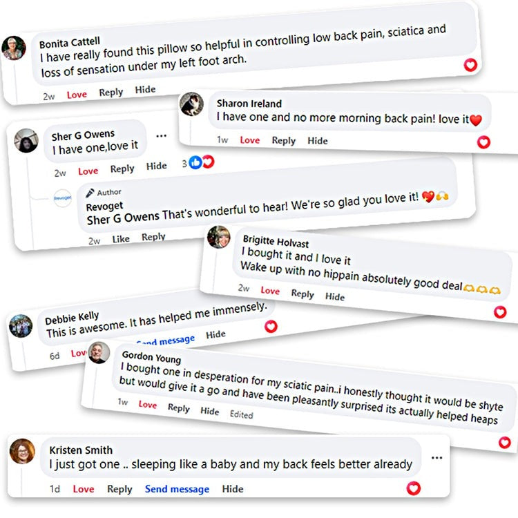 However, a superior solution exists! Nestling the Revoget™ Alignment Pillow between your legs rectifies the misalignment, mitigates pain, and shields the sciatic nerve from compression.